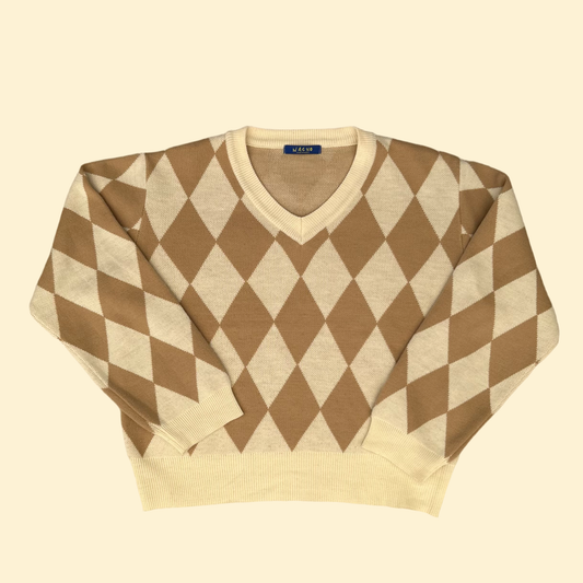 1990s Beige Diamond V-neck Sweater | Nacho US Women's S