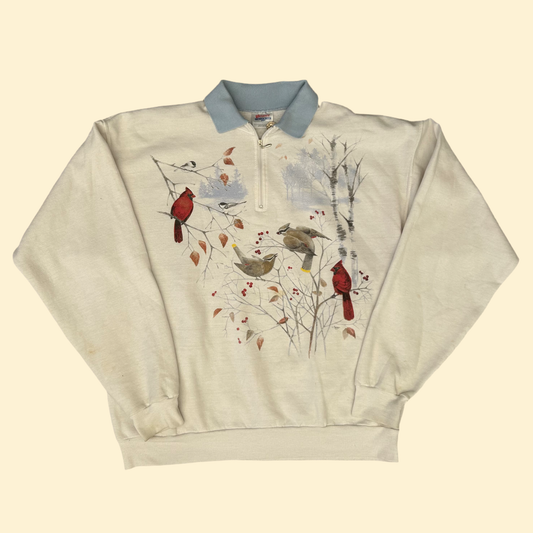 1990s White Bird Collared Sweater | Hanes US Men's L
